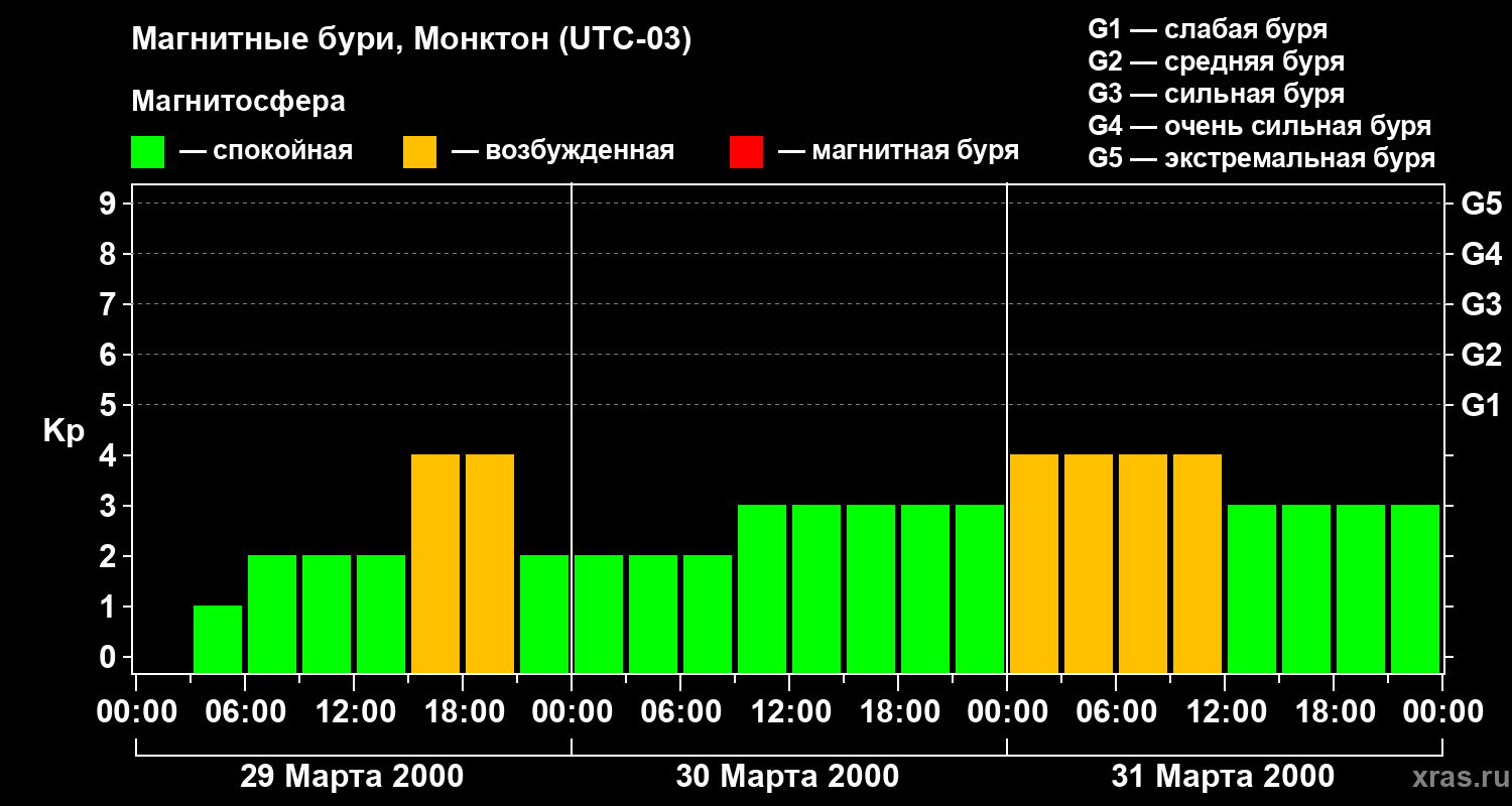Магнитные бури в Монктоне — 31 марта 2000 года