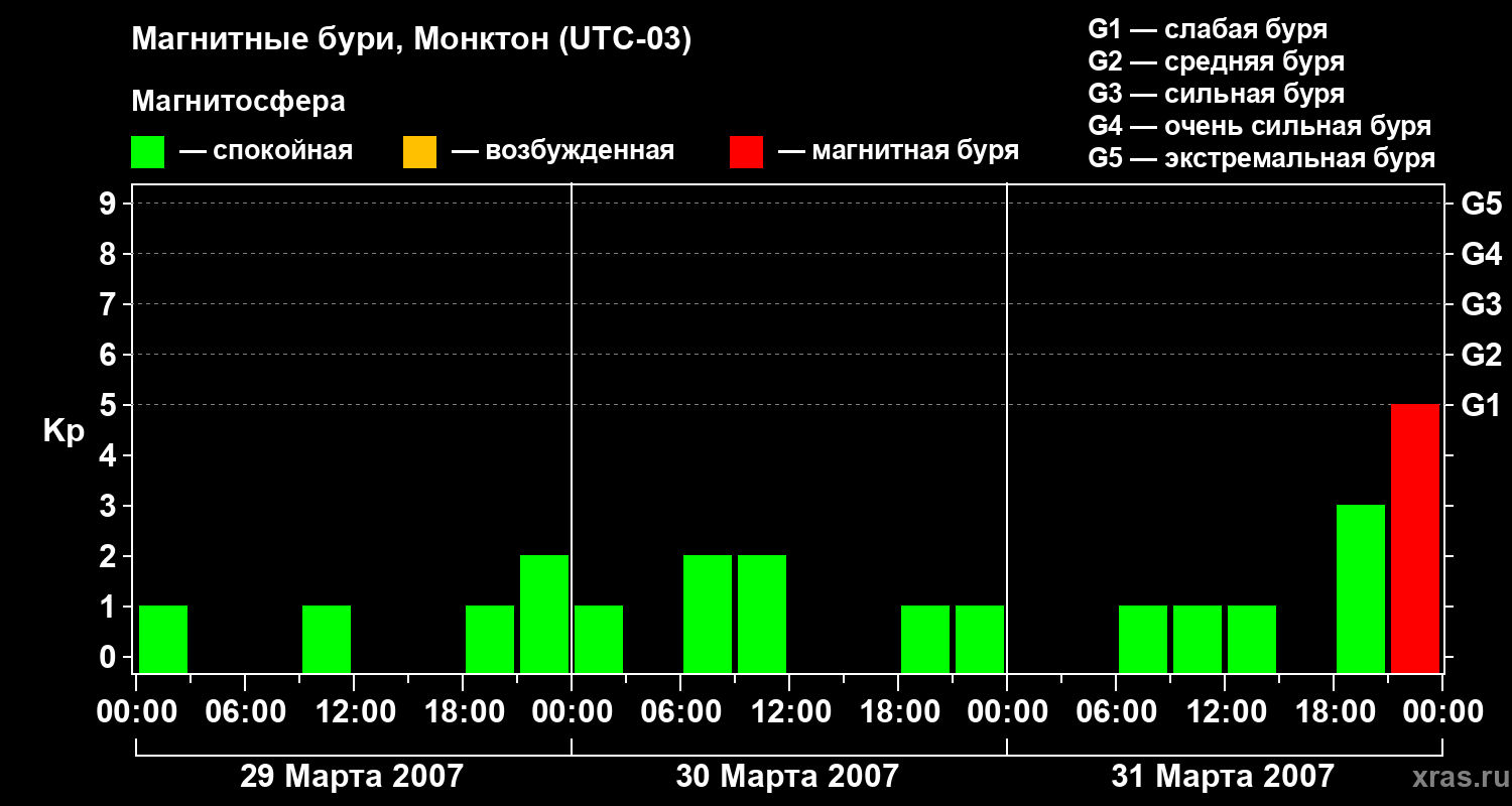 Магнитные бури в Монктоне — 31 марта 2007 года