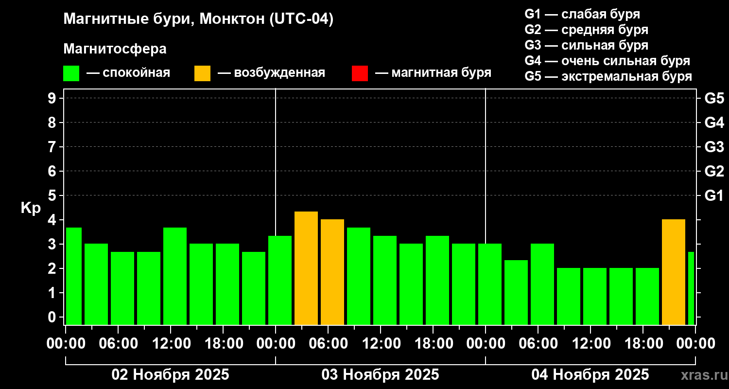 Магнитные бури в Монктоне 4 ноября 2025 года