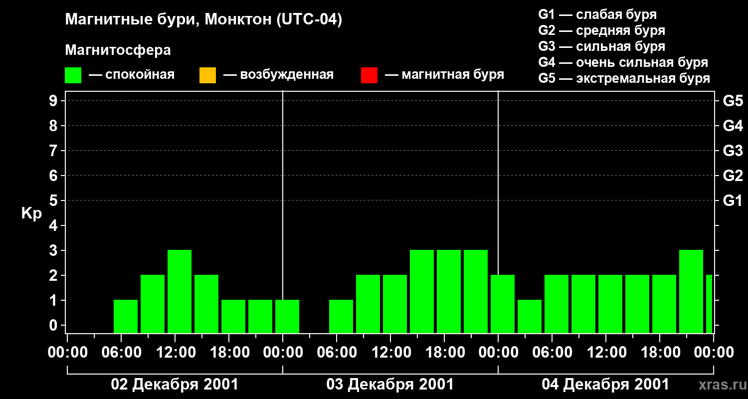 Магнитные бури в Монктоне 4 декабря 2001 года