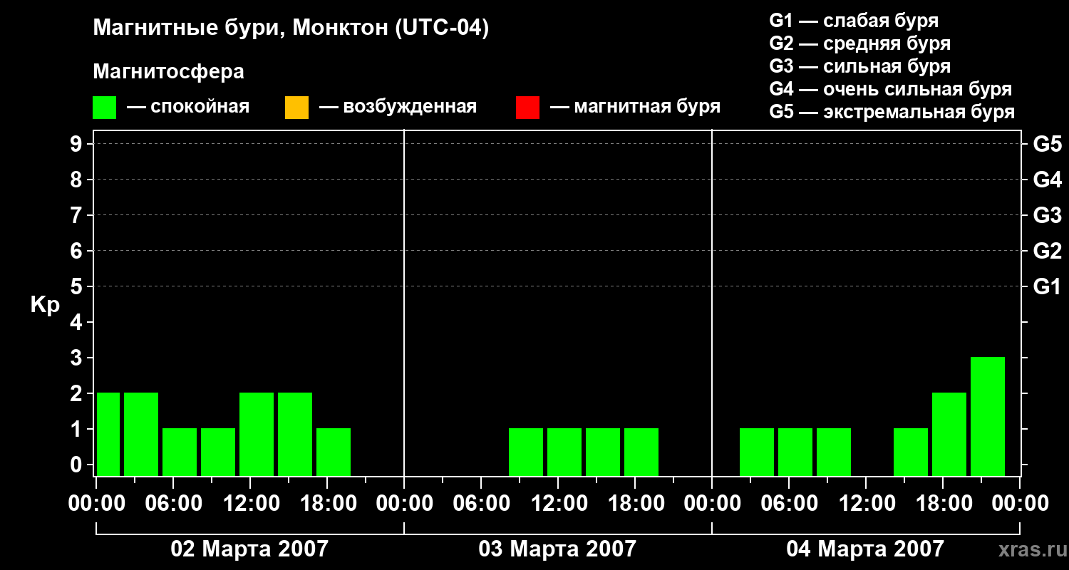Магнитные бури в Монктоне — 4 марта 2007 года