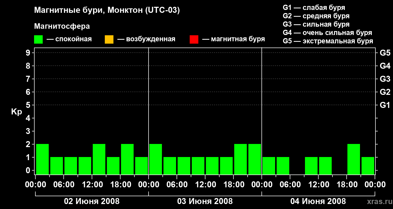 Магнитные бури в Монктоне — 4 июня 2008 года