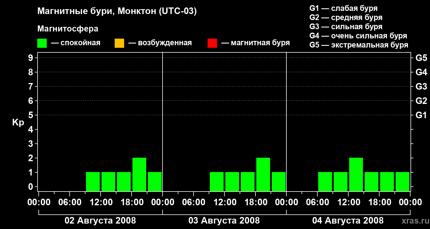 Магнитные бури в Монктоне — 4 августа 2008 года