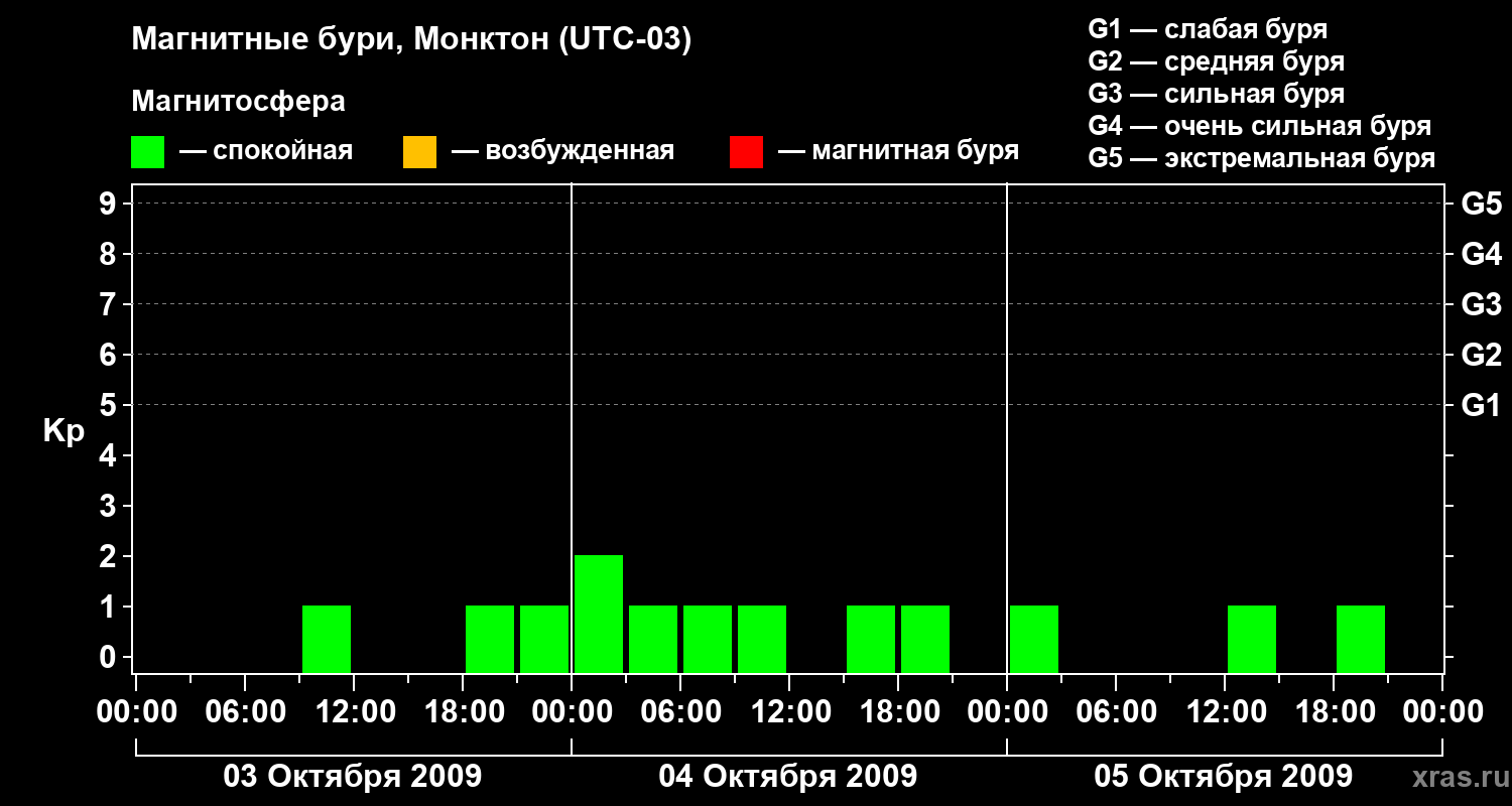 Магнитные бури в Монктоне — 5 октября 2009 года