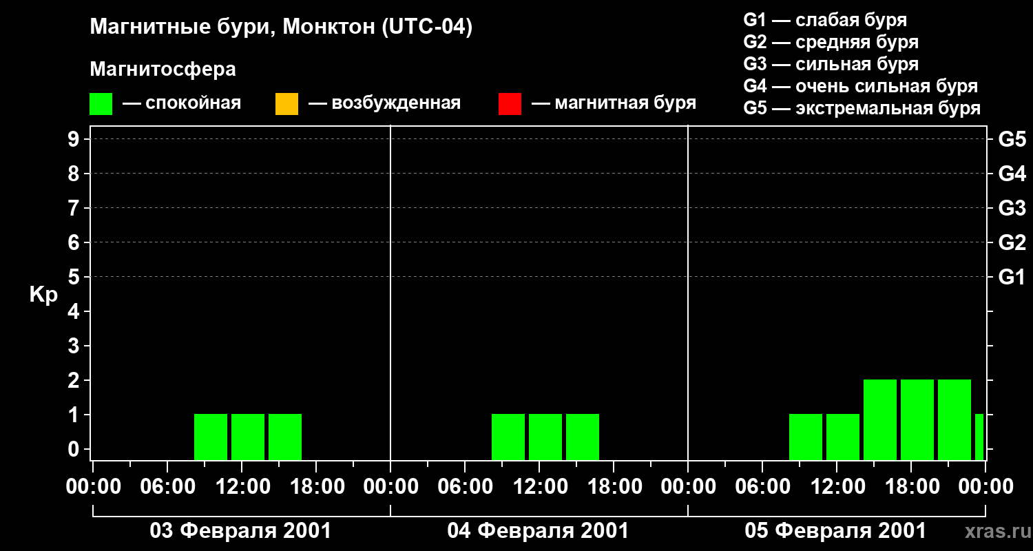 Магнитные бури в Монктоне 5 февраля 2001 года