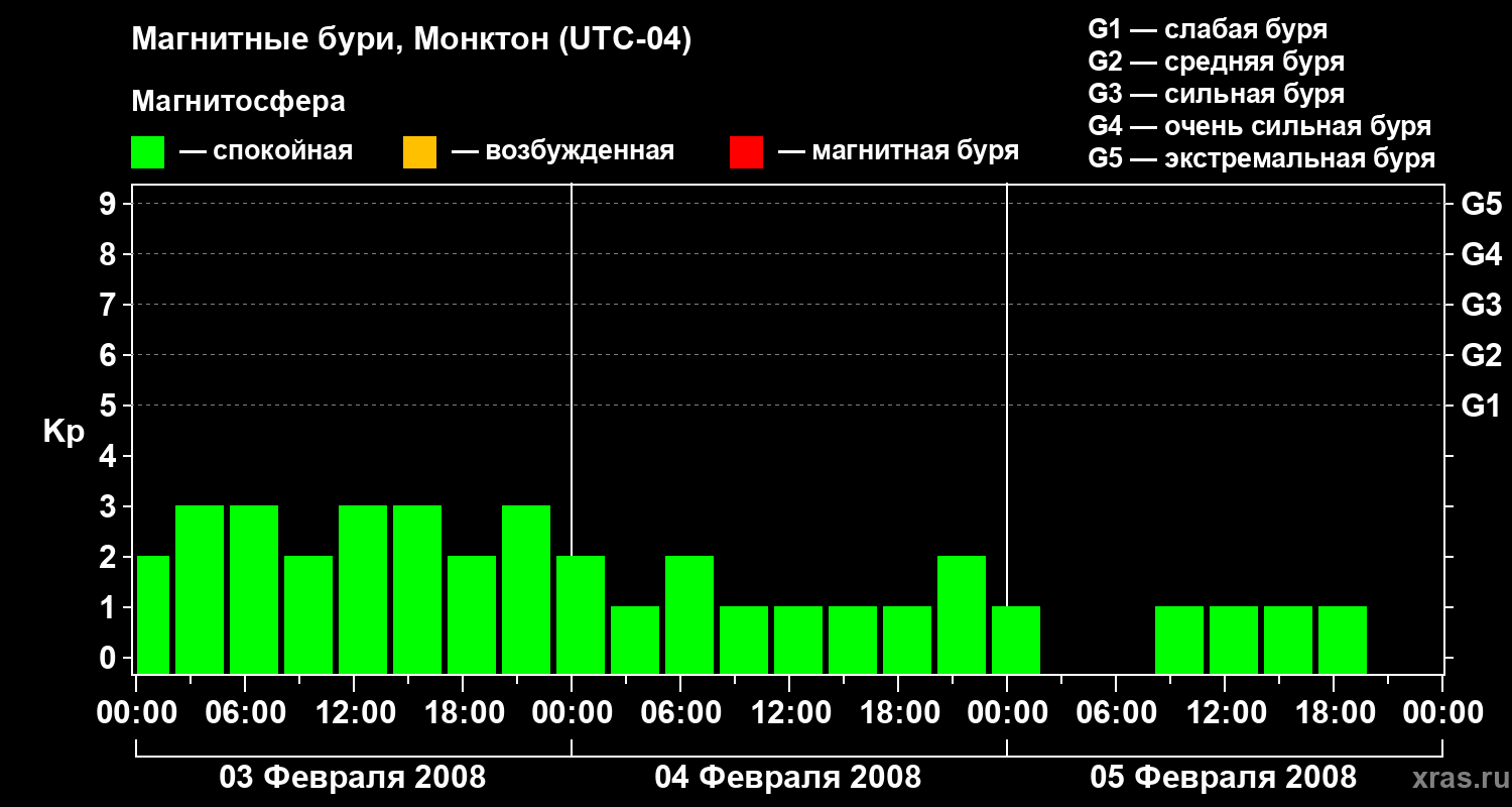 Магнитные бури в Монктоне — 5 февраля 2008 года