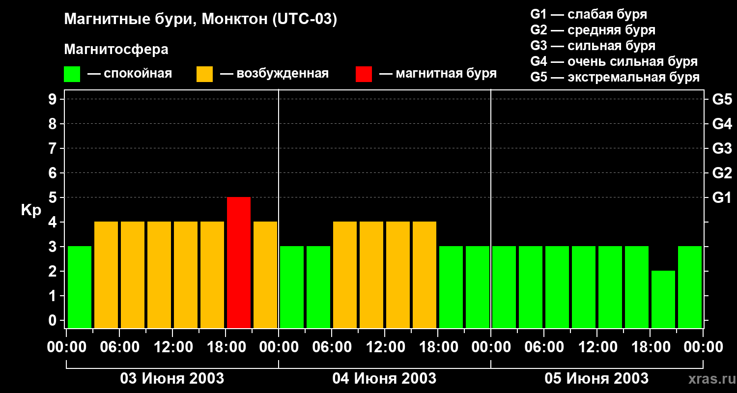 Магнитные бури в Монктоне — 5 июня 2003 года