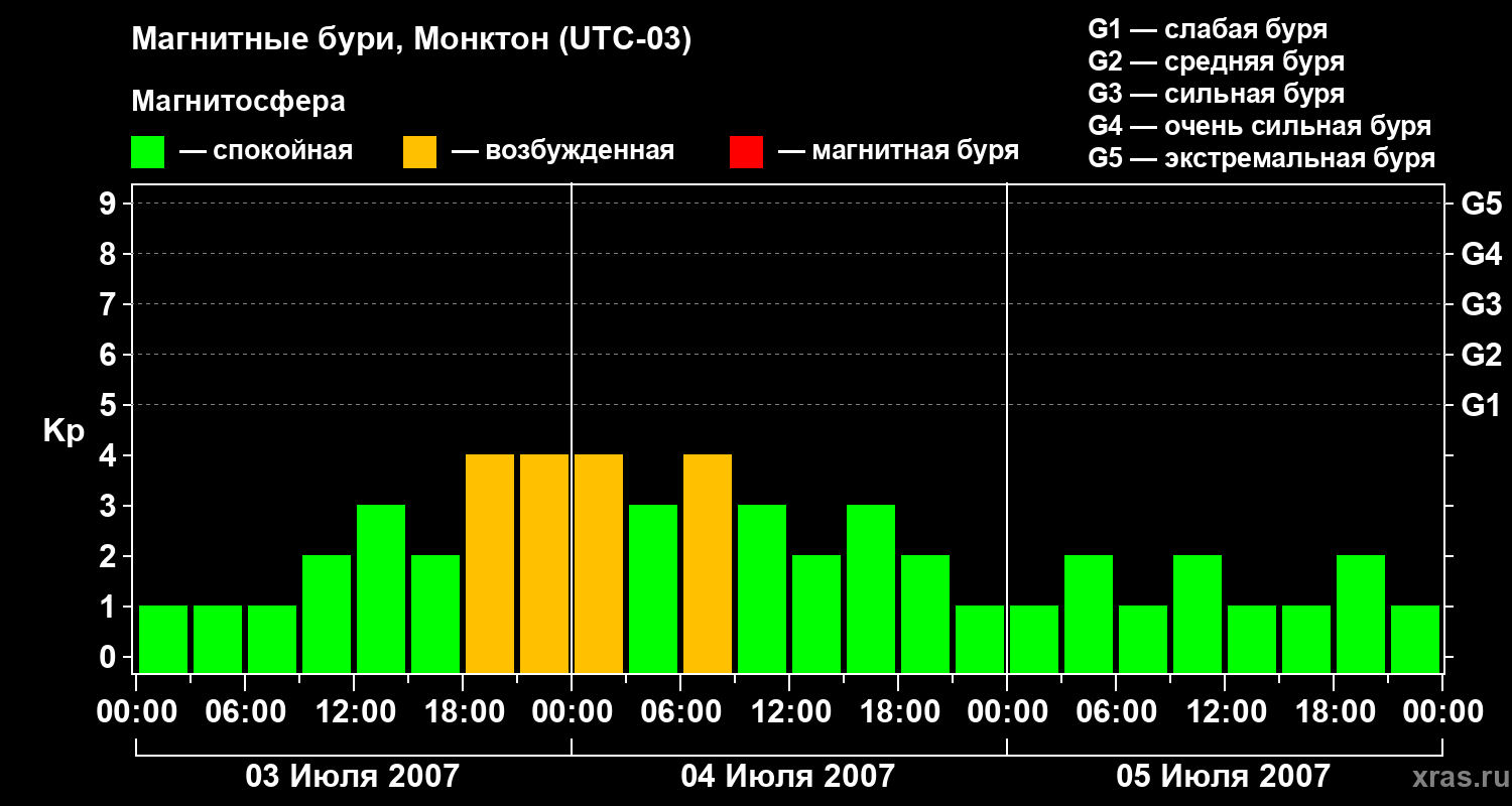 Магнитные бури в Монктоне 5 июля 2007 года
