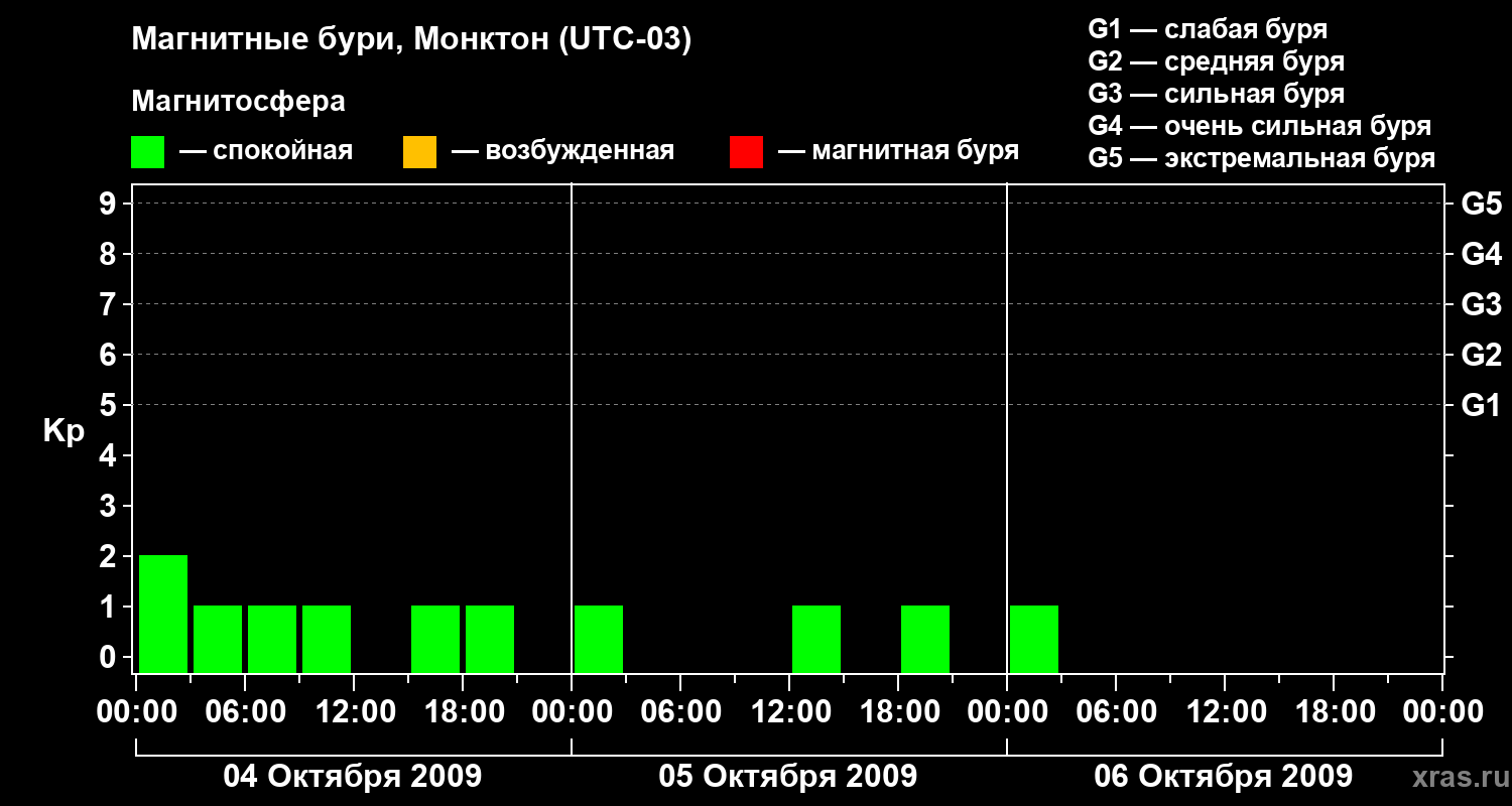 Магнитные бури в Монктоне — 6 октября 2009 года