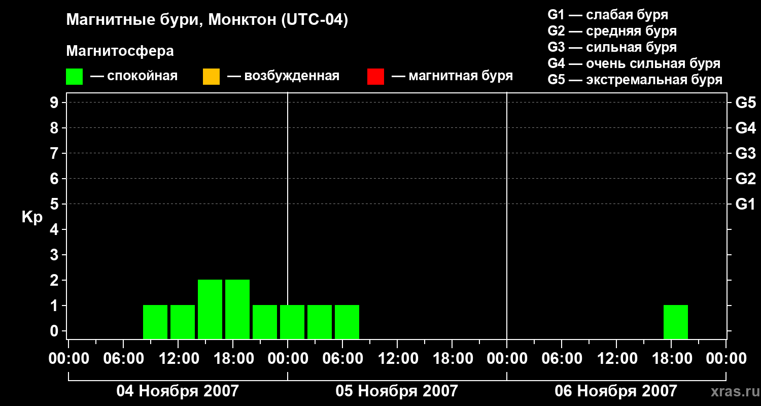 Магнитные бури в Монктоне 6 ноября 2007 года