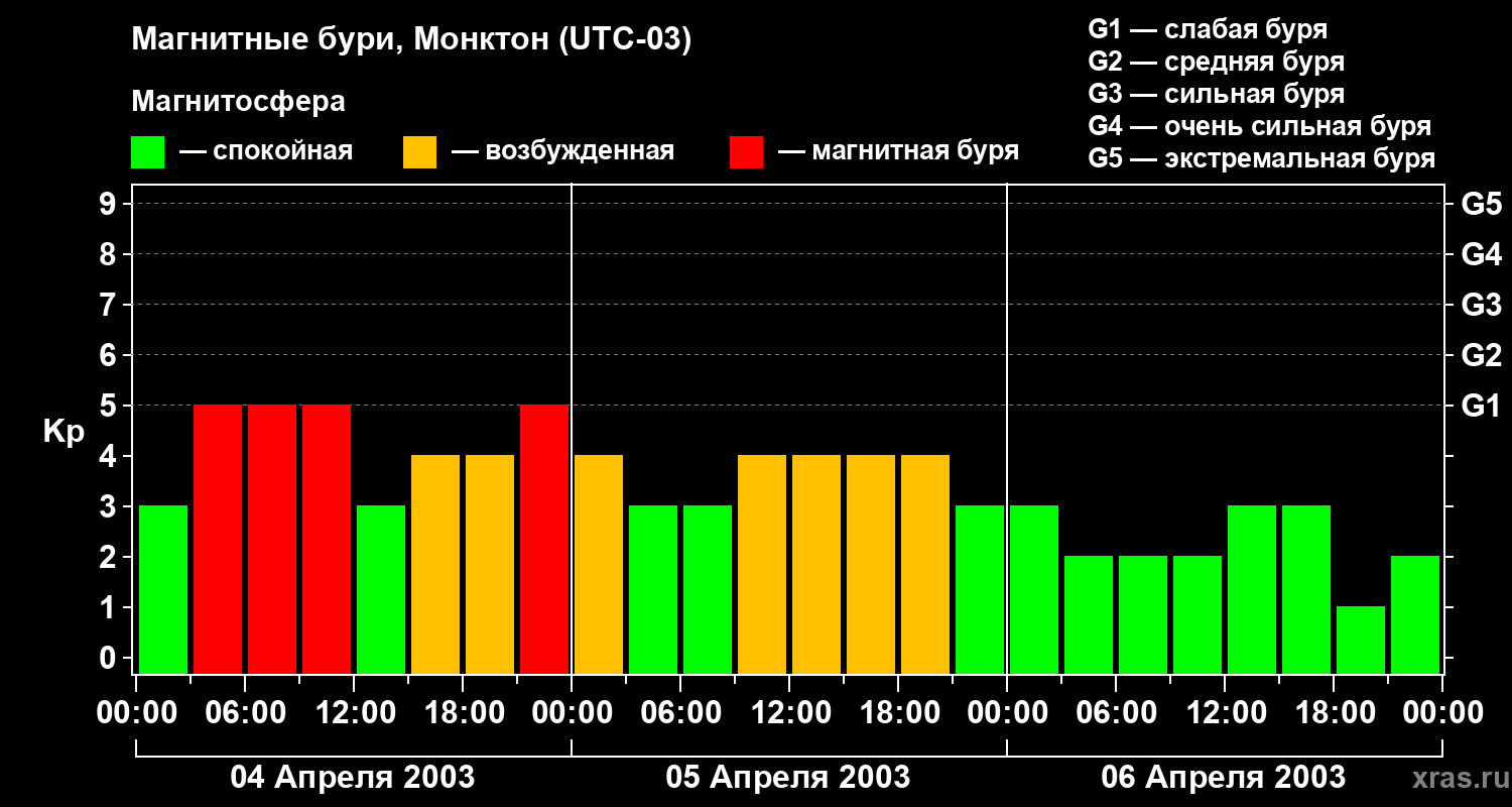 Магнитные бури в Монктоне — 6 апреля 2003 года