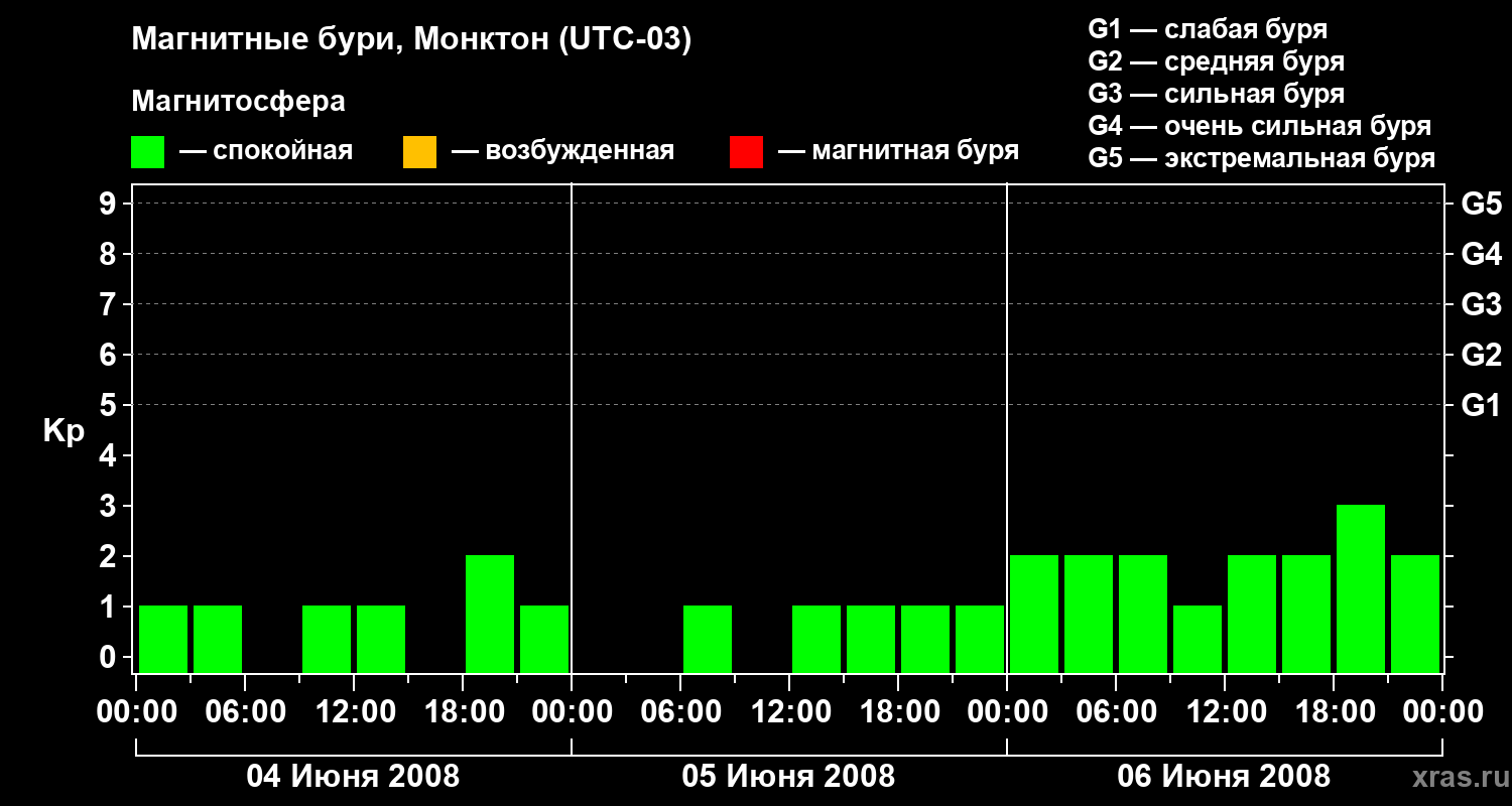 Магнитные бури в Монктоне 6 июня 2008 года
