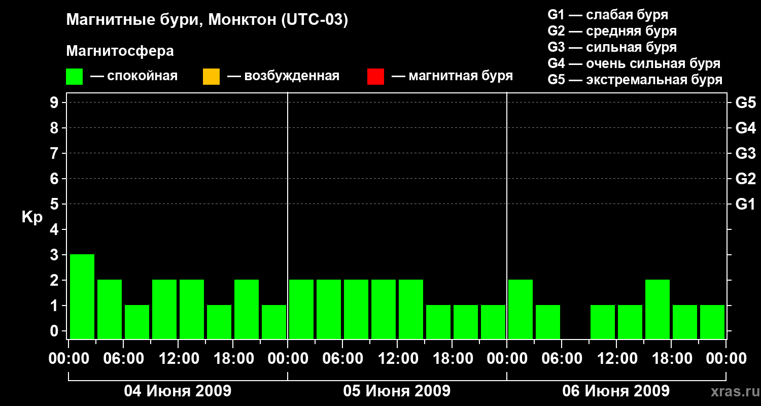 Магнитные бури в Монктоне — 6 июня 2009 года