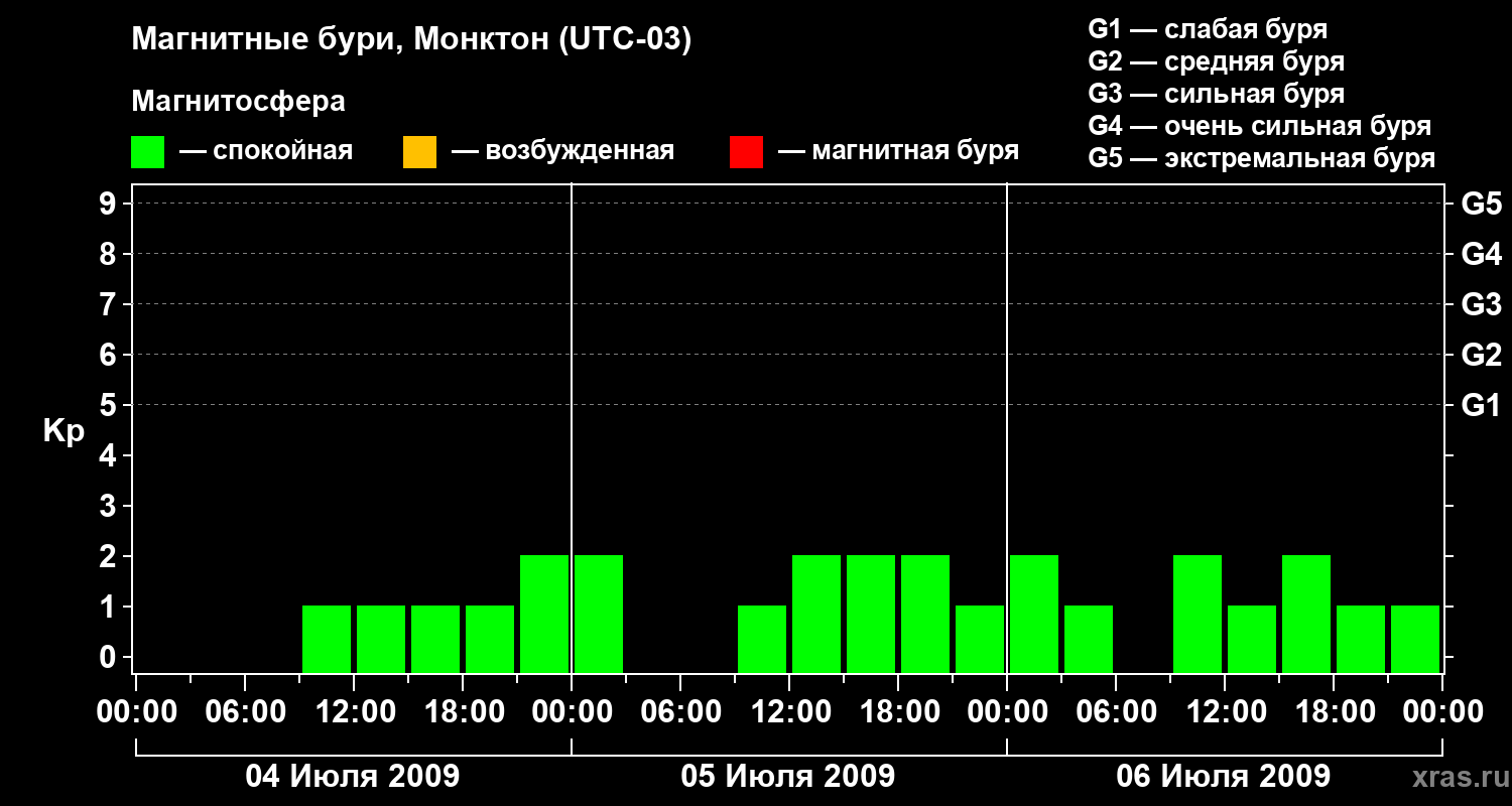 Магнитные бури в Монктоне — 6 июля 2009 года