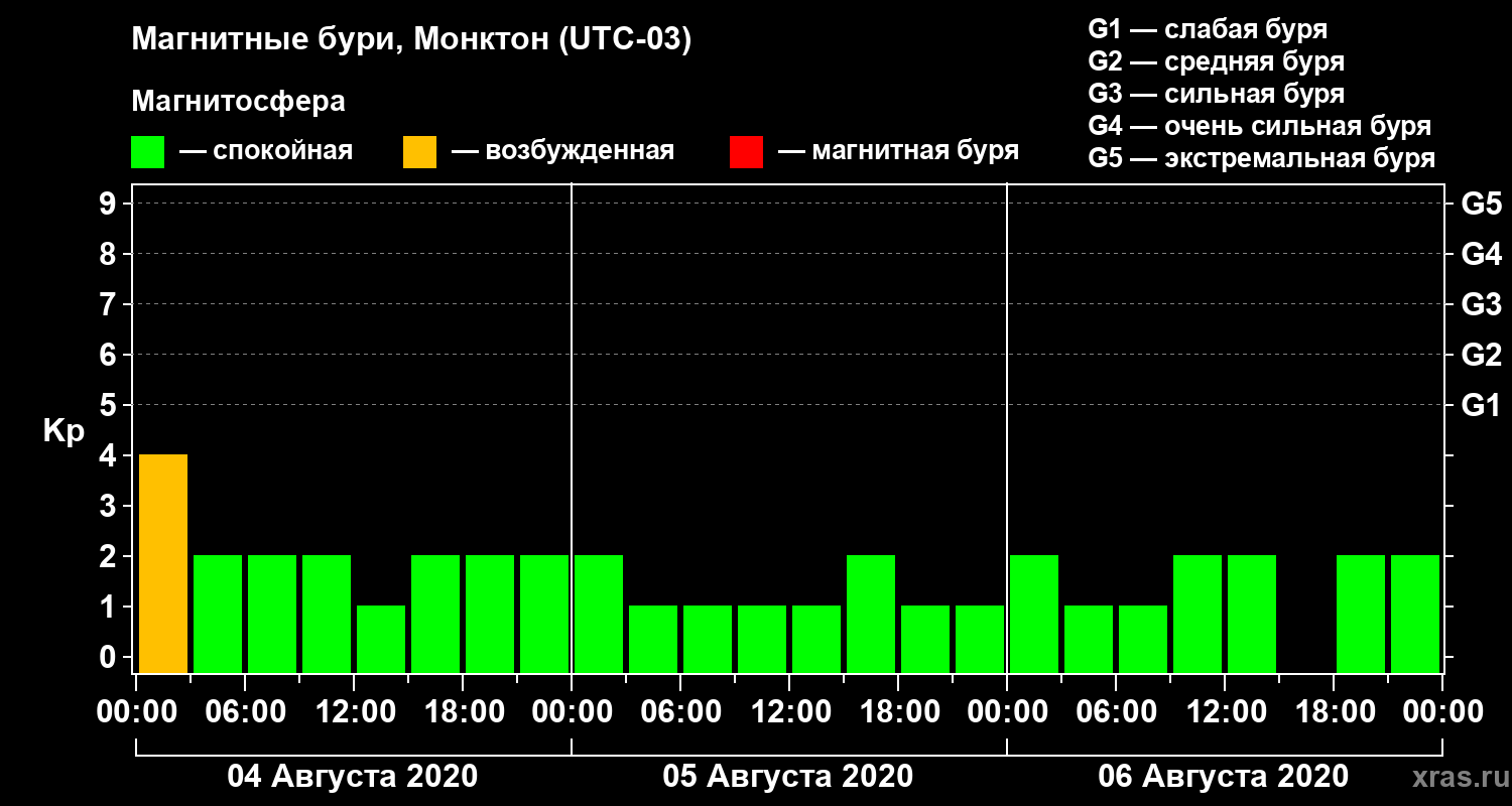 Магнитные бури в Монктоне — 6 августа 2020 года