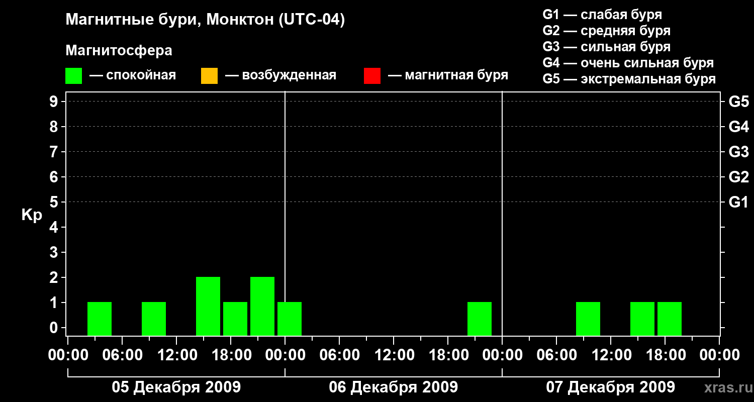 Магнитные бури в Монктоне — 7 декабря 2009 года