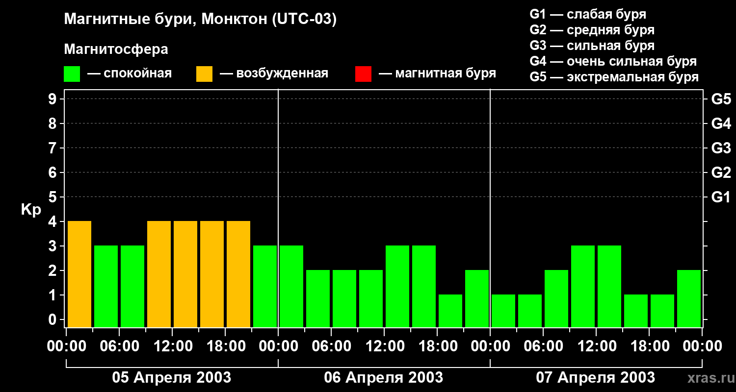 Магнитные бури в Монктоне — 7 апреля 2003 года
