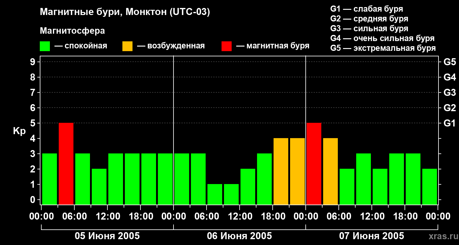 Магнитные бури в Монктоне — 7 июня 2005 года