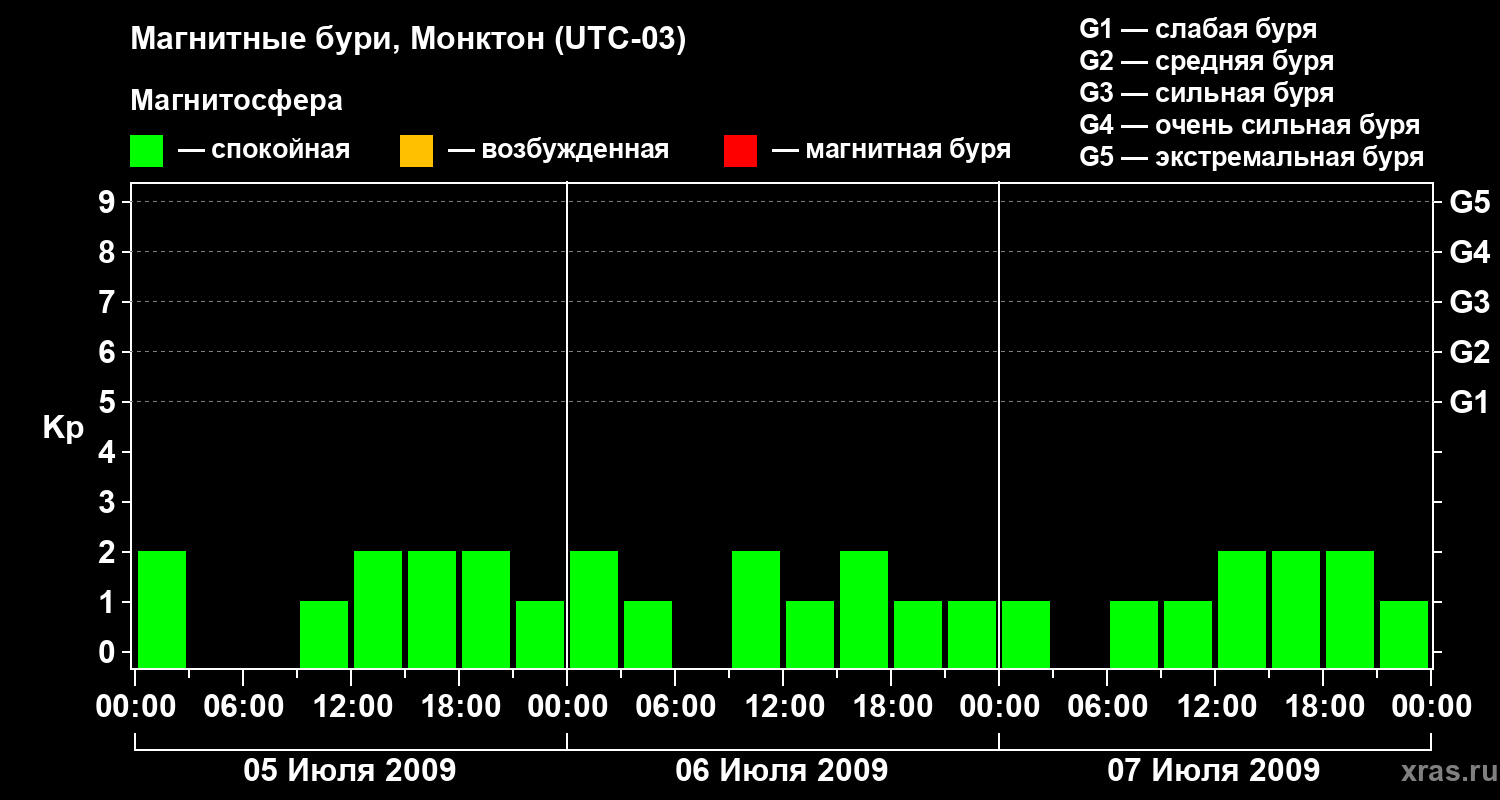 Магнитные бури в Монктоне — 7 июля 2009 года