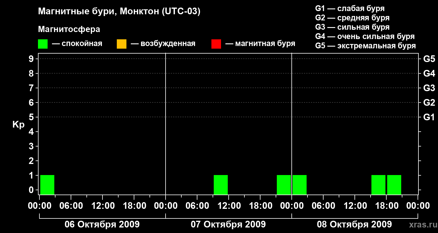 Магнитные бури в Монктоне — 8 октября 2009 года