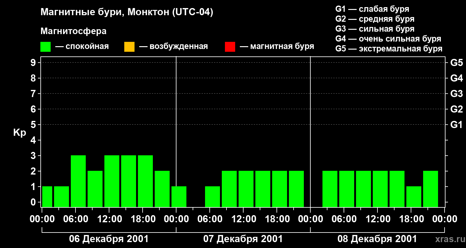 Магнитные бури в Монктоне 8 декабря 2001 года