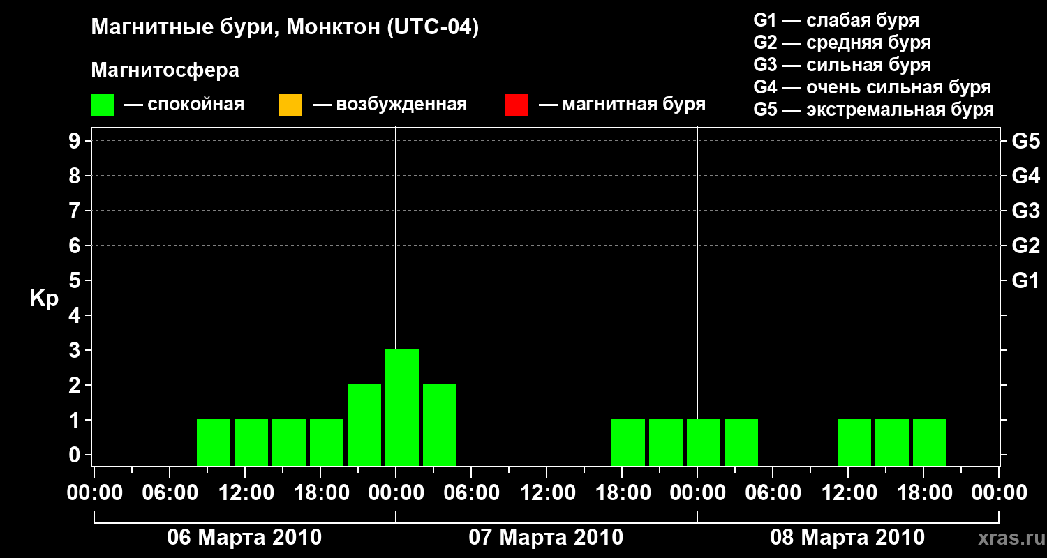 Магнитные бури в Монктоне — 8 марта 2010 года