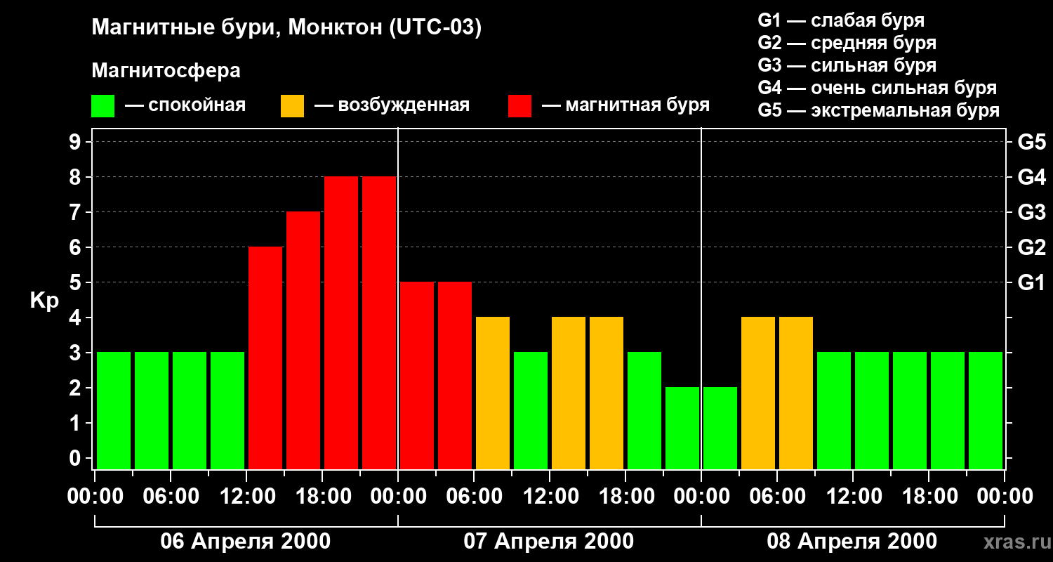 Магнитные бури в Монктоне — 8 апреля 2000 года