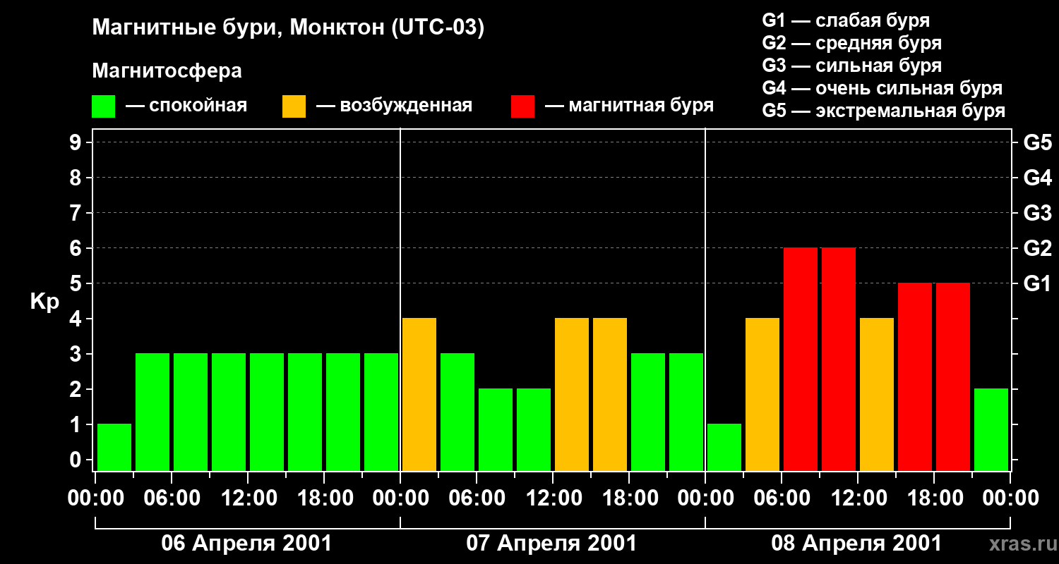 Магнитные бури в Монктоне — 8 апреля 2001 года