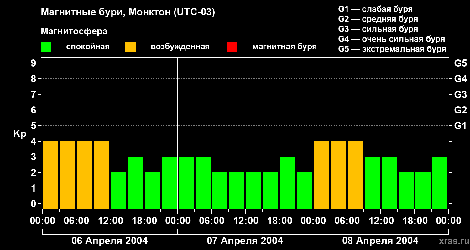 Магнитные бури в Монктоне — 8 апреля 2004 года