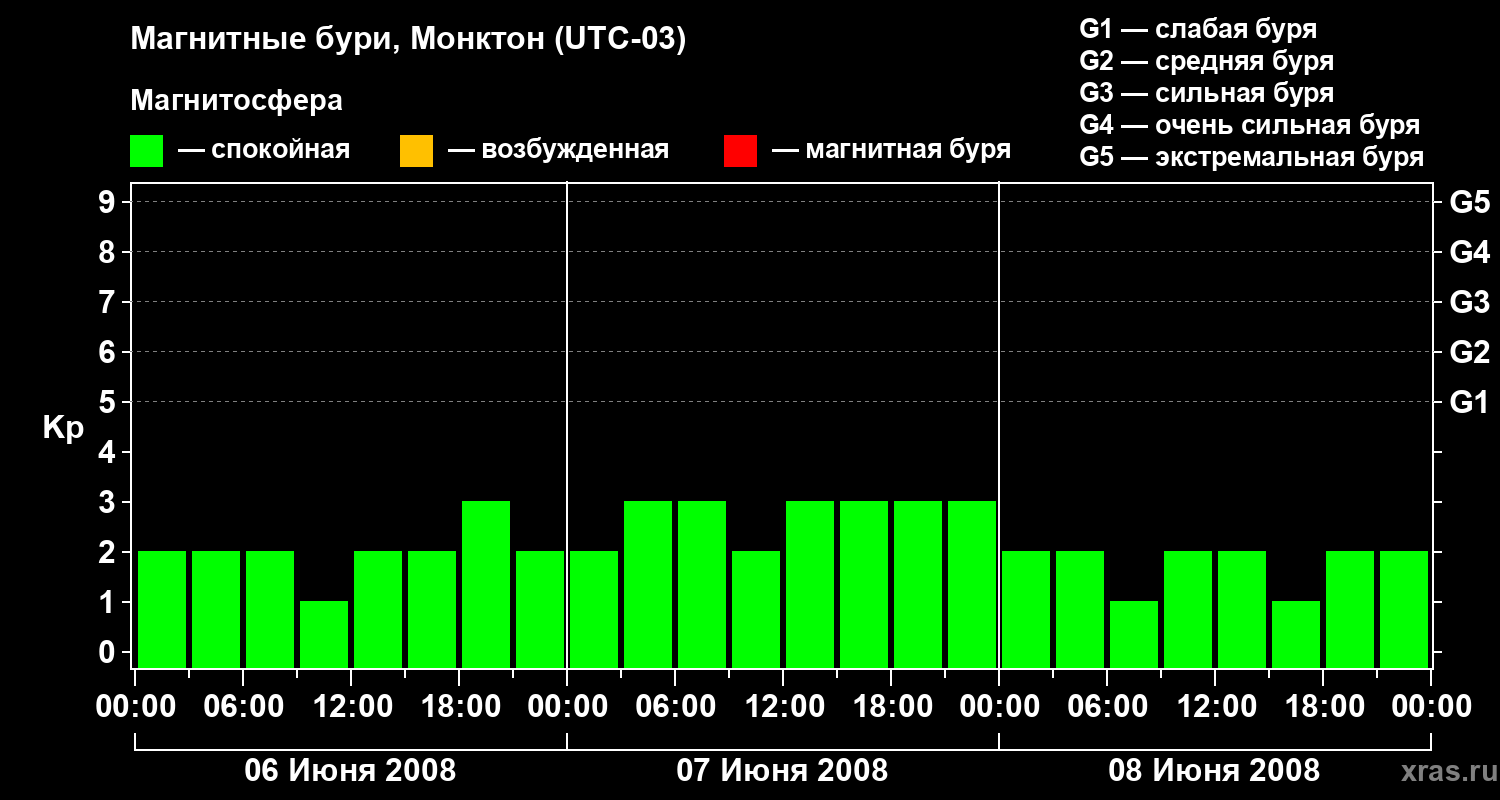 Магнитные бури в Монктоне — 8 июня 2008 года