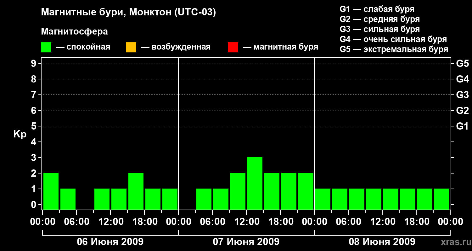 Магнитные бури в Монктоне в июне 2009 года