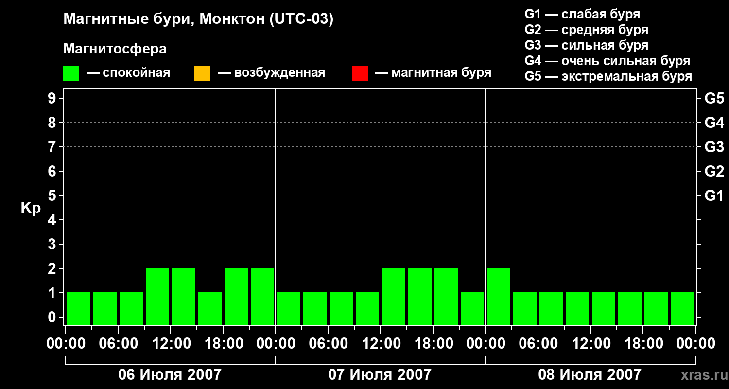 Магнитные бури в Монктоне — 8 июля 2007 года