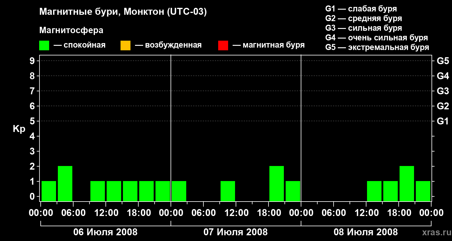 Магнитные бури в Монктоне — 8 июля 2008 года