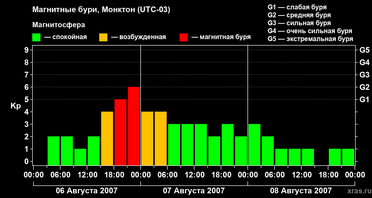 Магнитные бури в Монктоне — 8 августа 2007 года