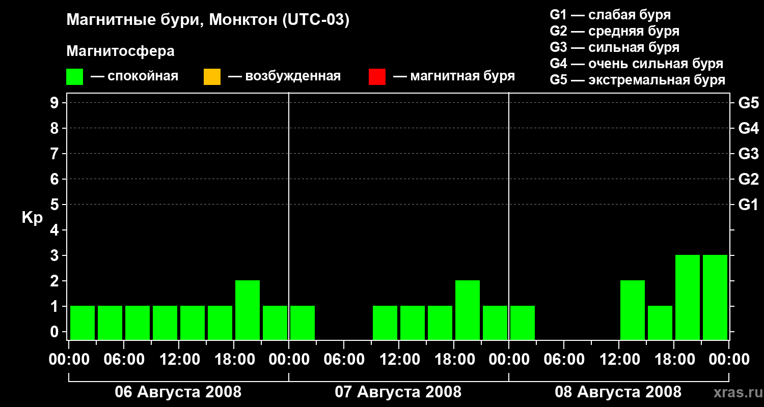 Магнитные бури в Монктоне — 8 августа 2008 года
