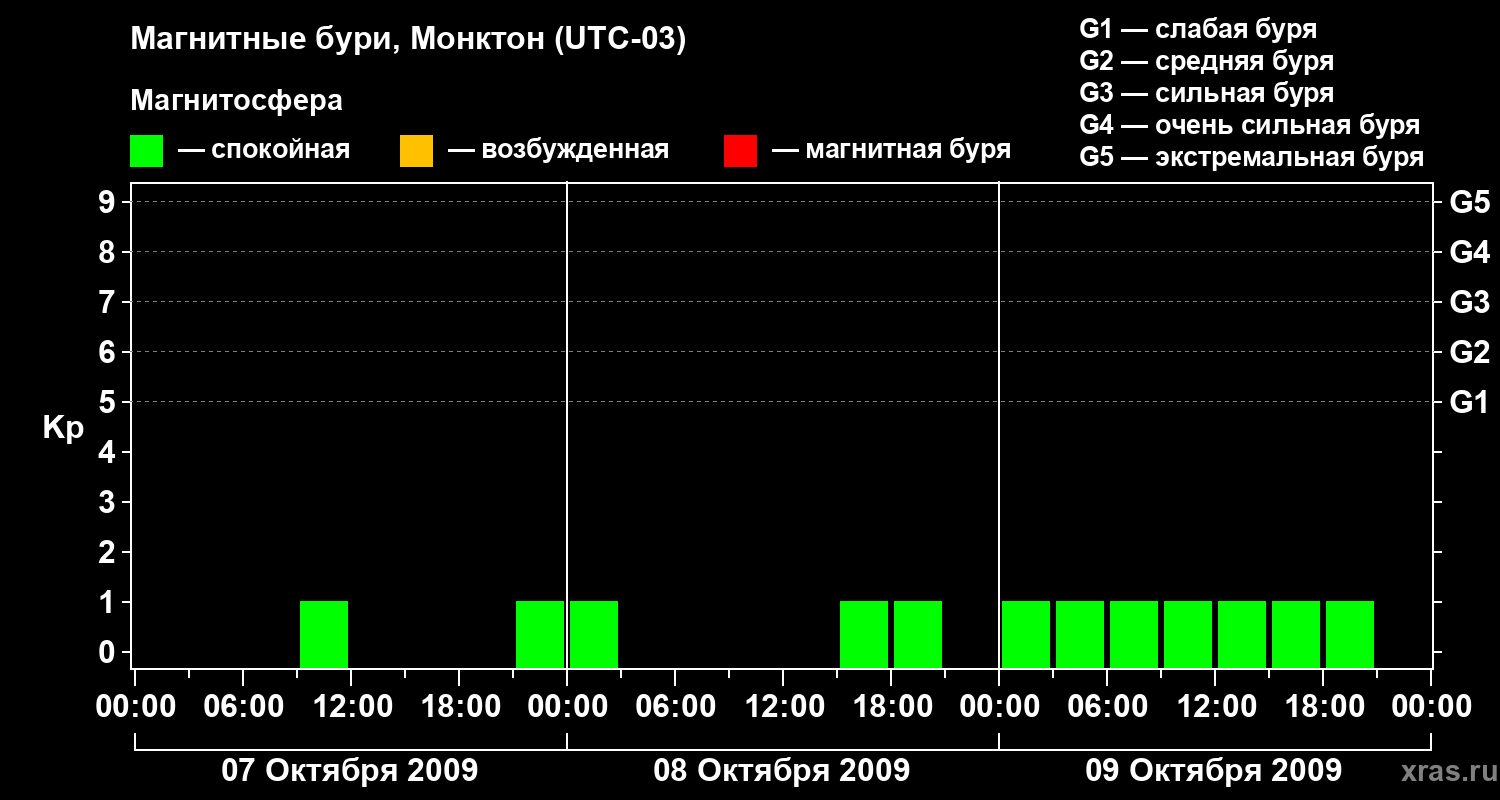 Магнитные бури в Монктоне — 9 октября 2009 года