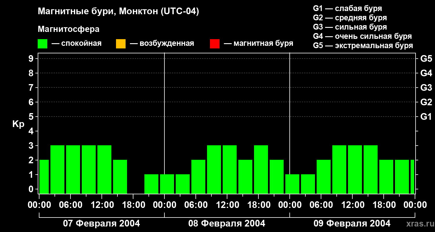 Магнитные бури в Монктоне — 9 февраля 2004 года