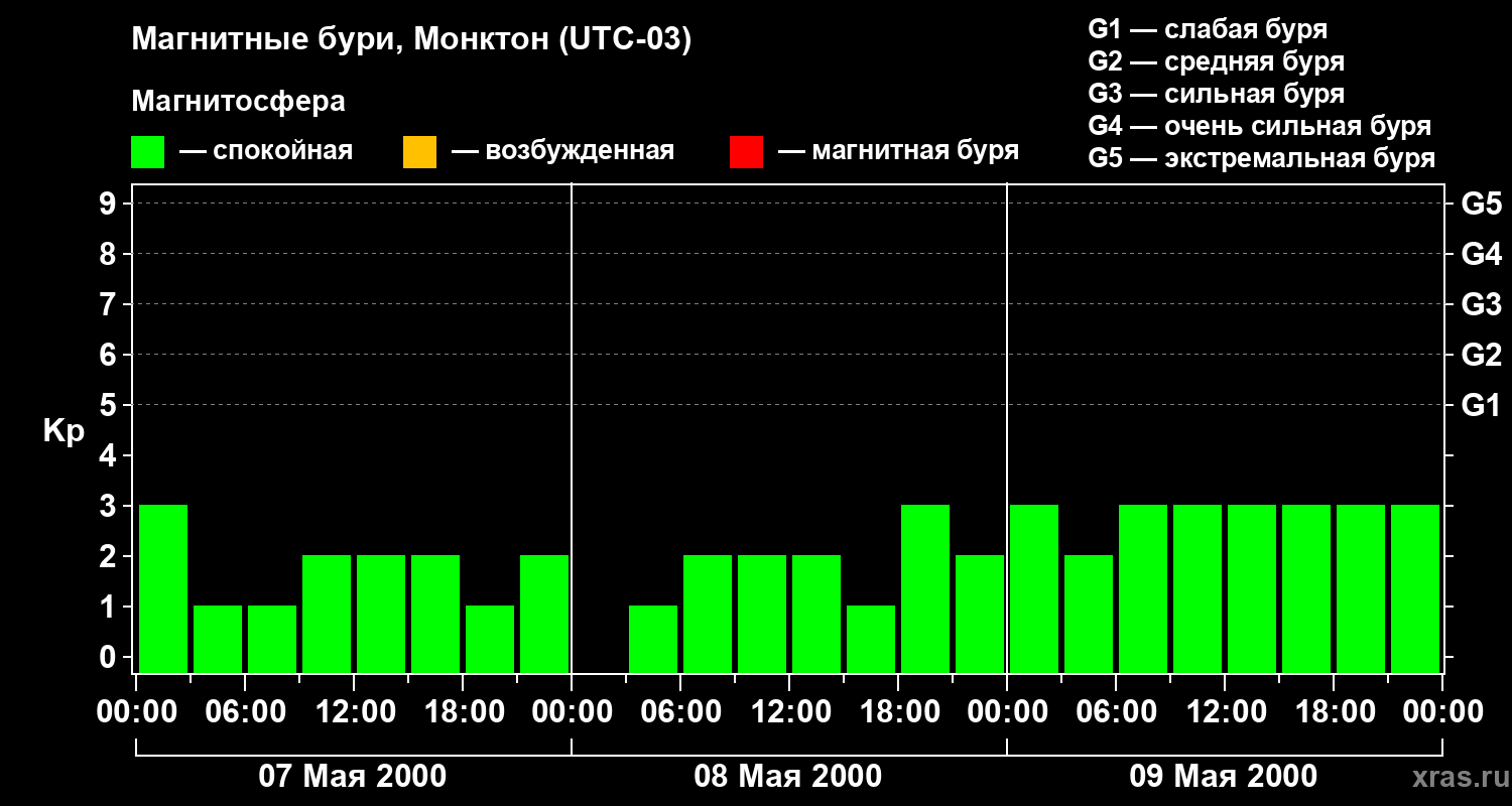 Магнитные бури в Монктоне — 9 мая 2000 года