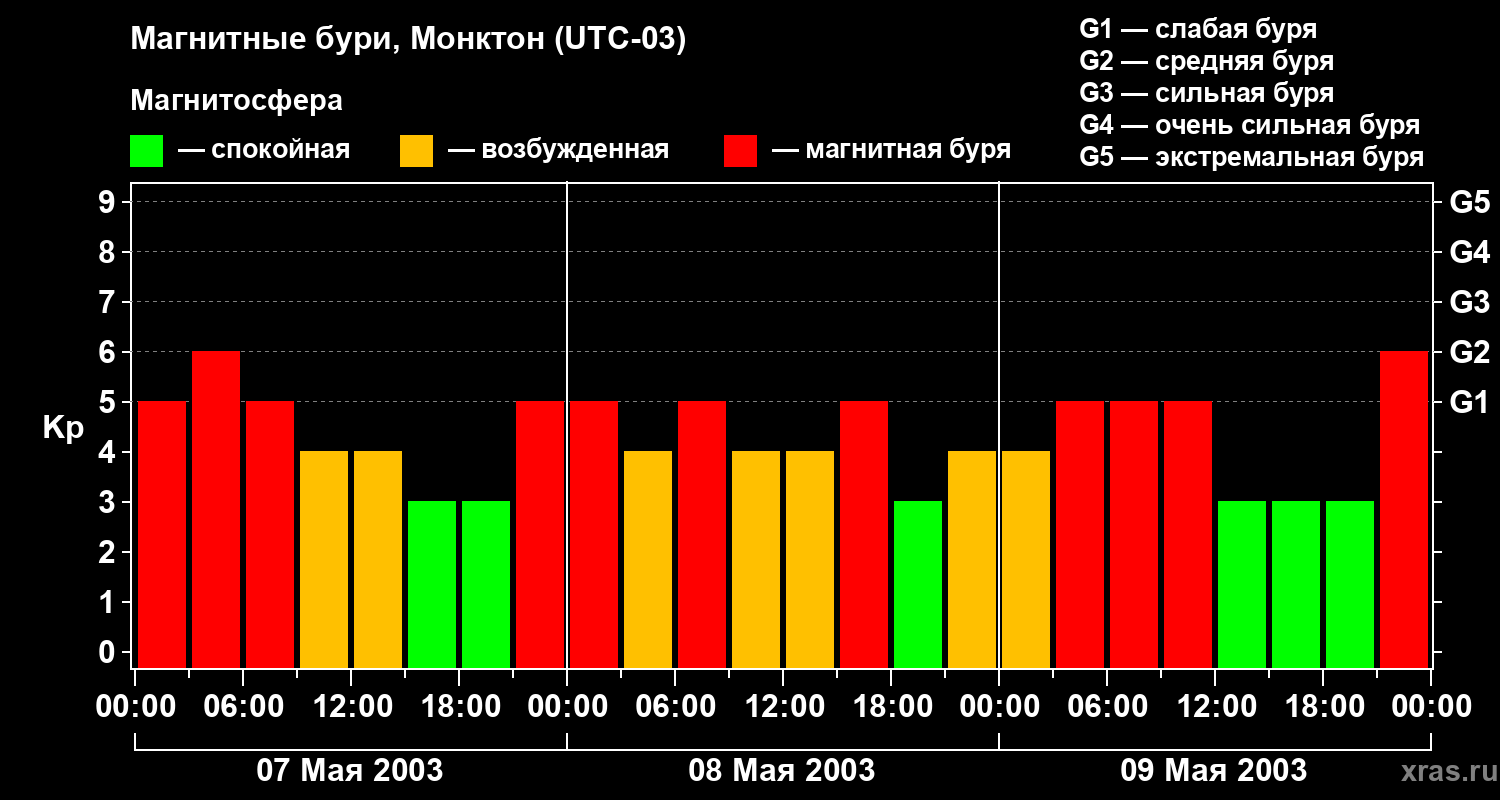 Магнитные бури в Монктоне — 9 мая 2003 года