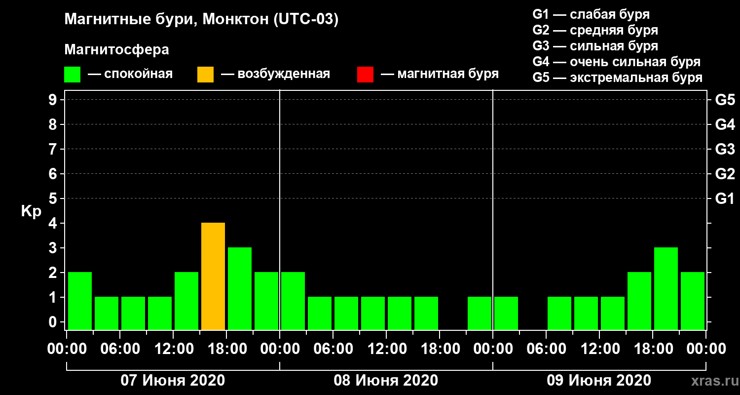 Магнитные бури в Монктоне — 9 июня 2020 года
