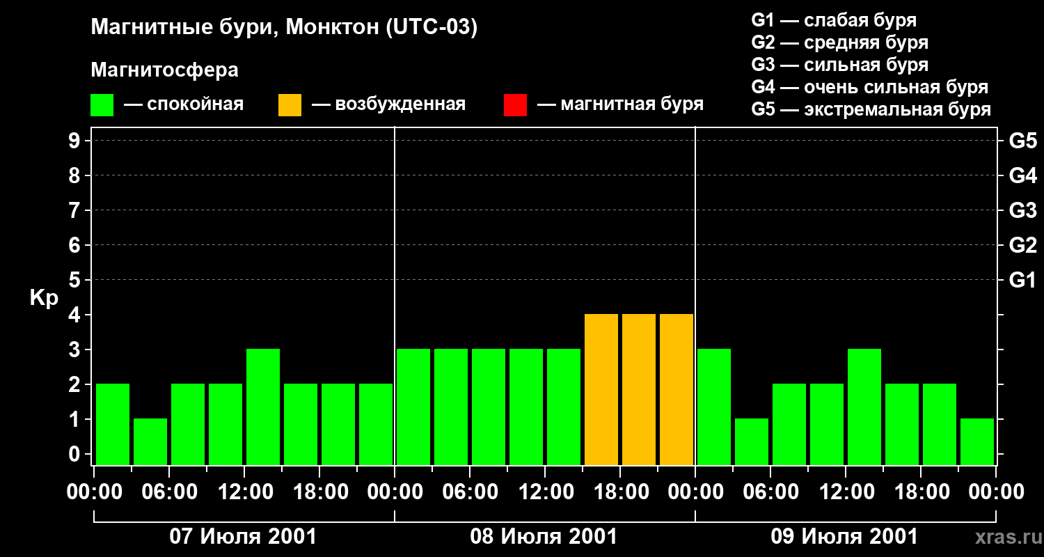 Магнитные бури в Монктоне — 9 июля 2001 года