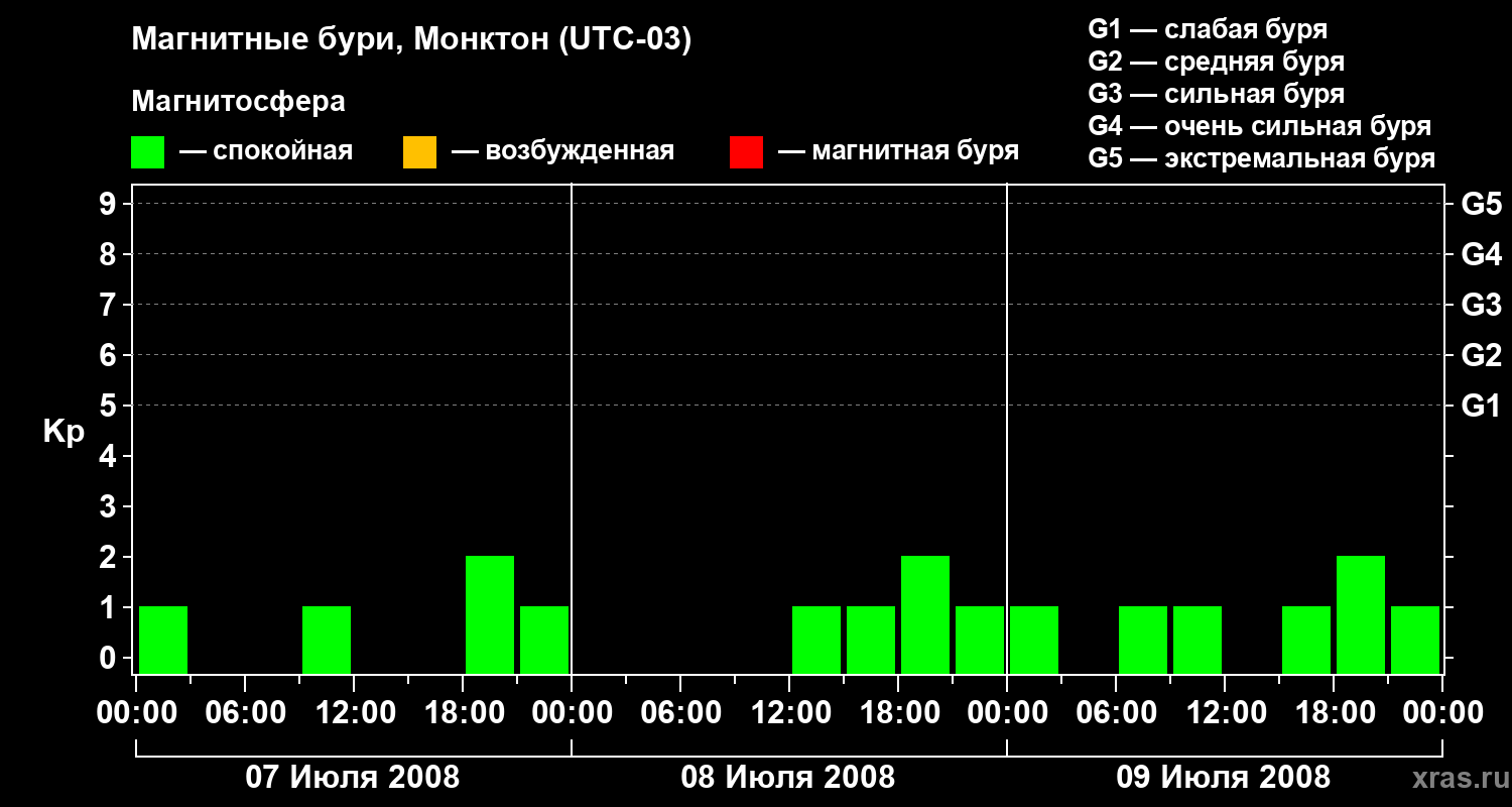 Магнитные бури в Монктоне — 9 июля 2008 года