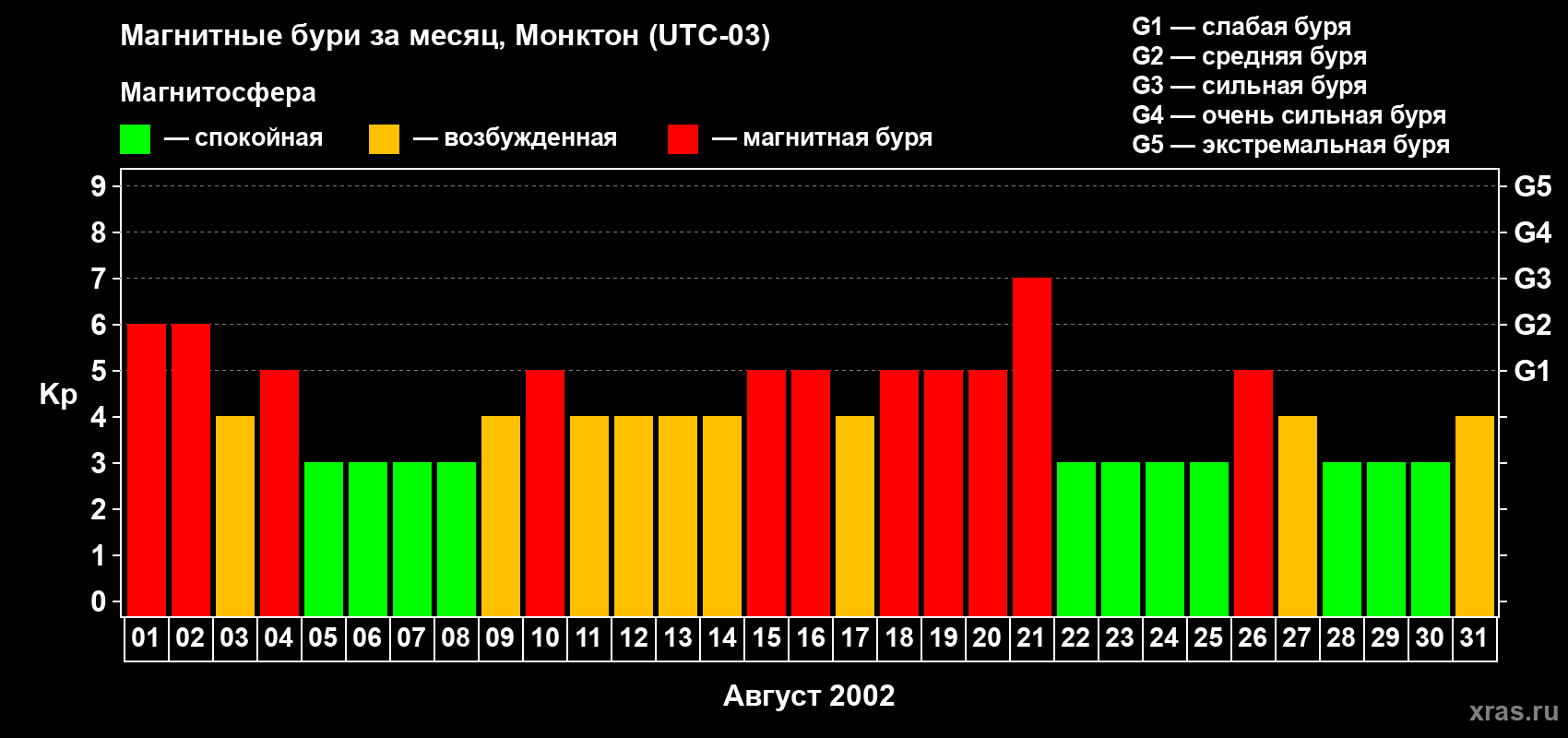 Список магнитных бурь в августе 2002 года