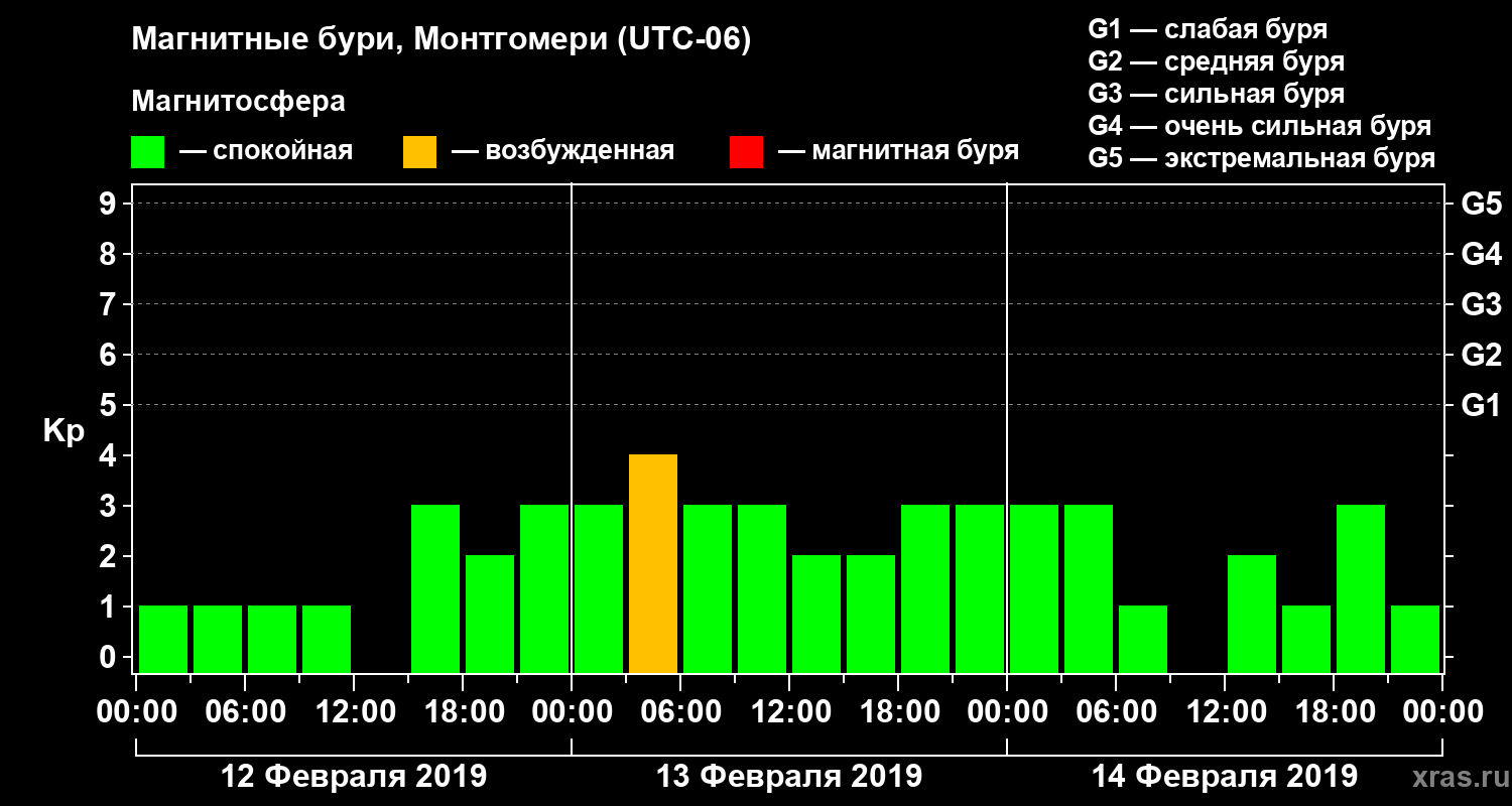 Магнитные бури Монтгомери 14 февраля 2019 года