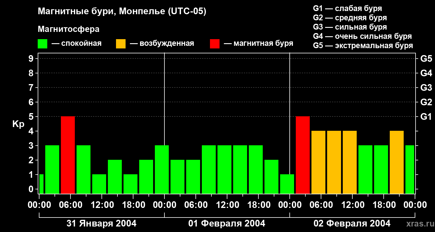 Магнитные бури в Монпелье — 2 февраля 2004 года