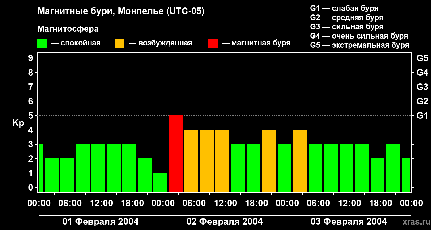 Магнитные бури в Монпелье — 3 февраля 2004 года