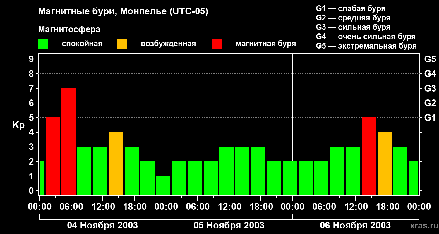 Магнитные бури в Монпелье — 6 ноября 2003 года