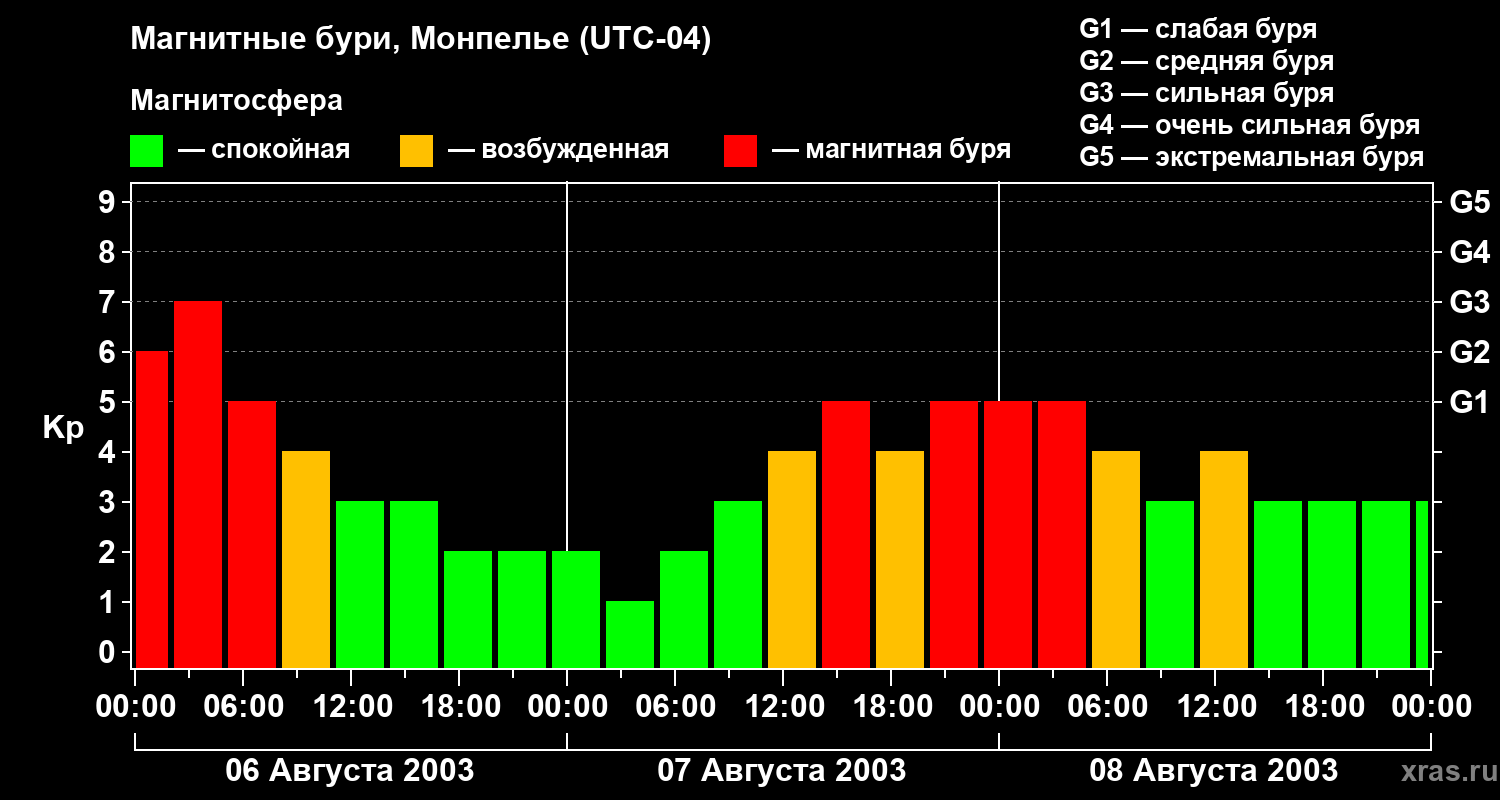 Магнитные бури в Монпелье — 8 августа 2003 года