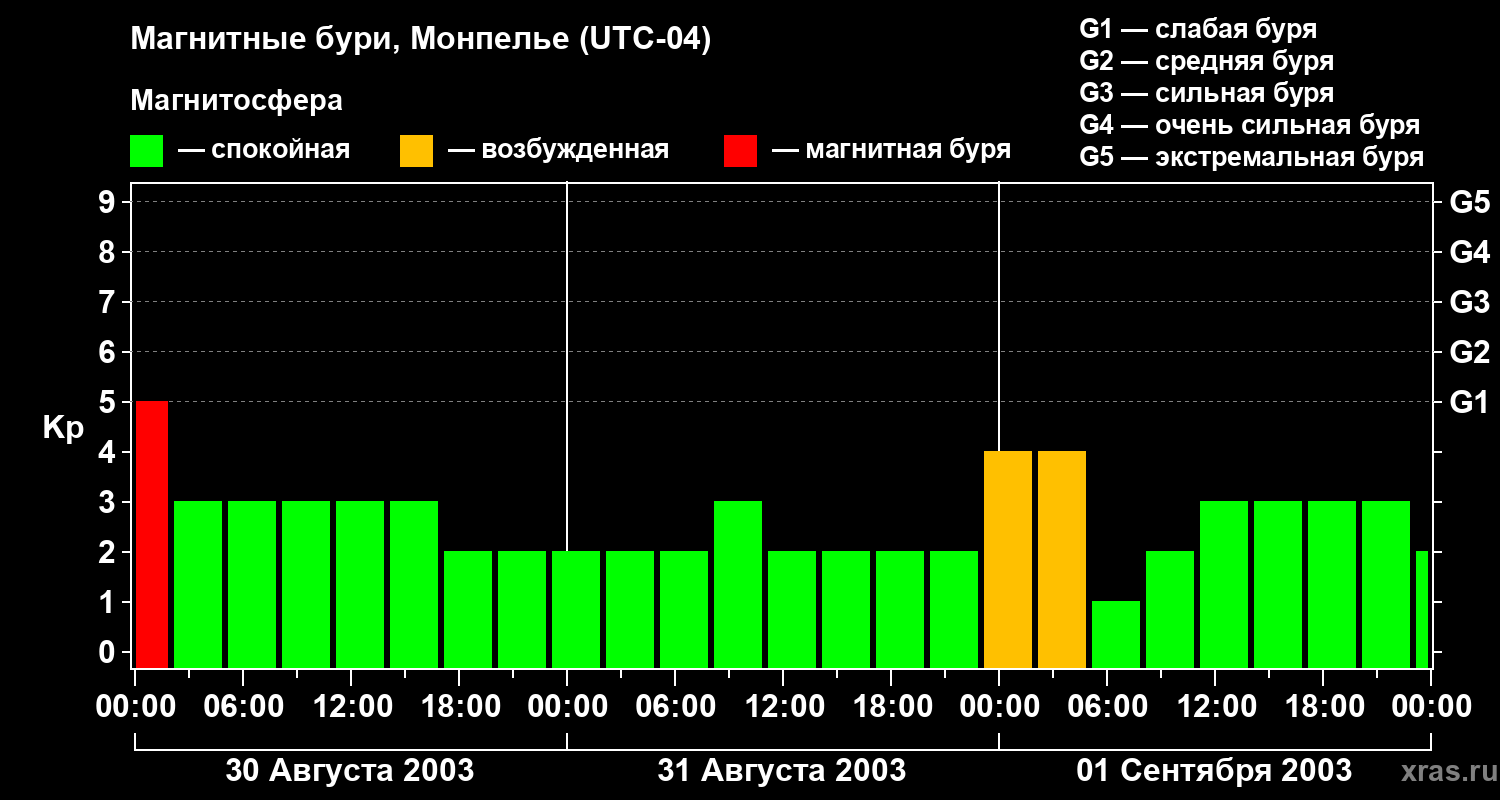 Магнитные бури в Монпелье — 1 сентября 2003 года