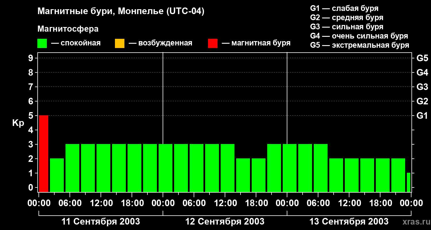 Магнитные бури в Монпелье — 13 сентября 2003 года